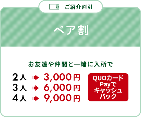 • 大学生協会員様でご紹介割引をご利用される場合は、すべてQUOカードPayでのキャッシュバックとなります。